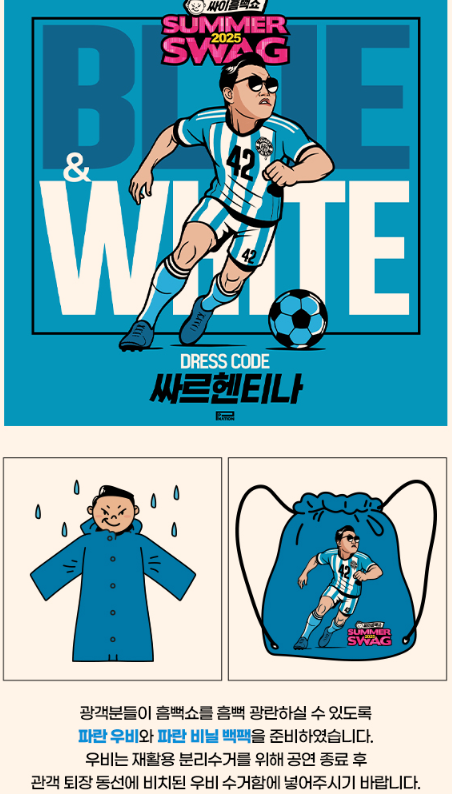 예매 성공하셨다면, 준비물을 확인 해두세요. 올여름 최고의 라이브 물축제, 싸이 흠뻑쇼 SUMMER SWAG 2025를 제대로 즐기시길 바래요!